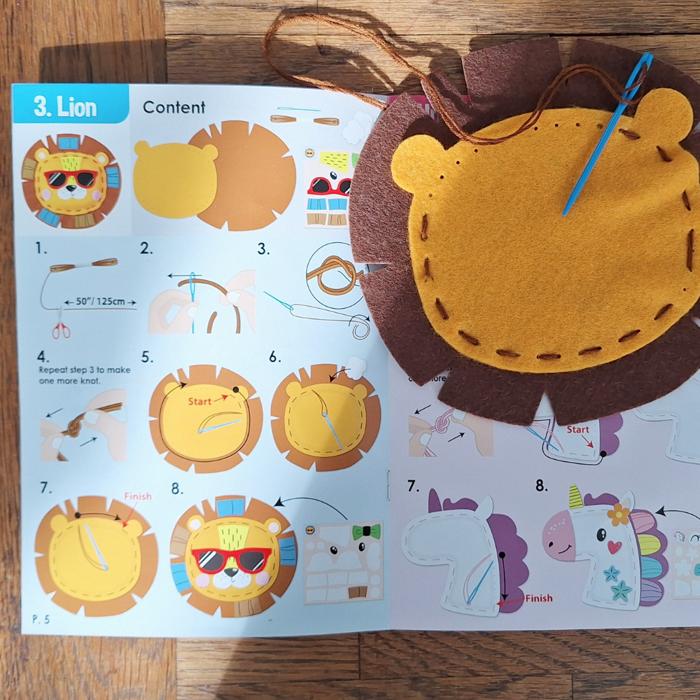 This kids’ sewing kit has become my new favorite thing to do with my son! It’s perfect for little hands — the felt pieces already have holes, and the plastic needle is safe and not too sharp.